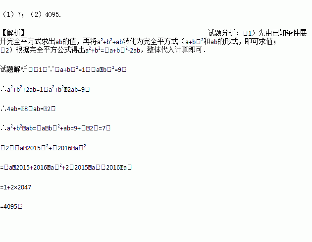 (2)已知:a+b=4,ab=3,求