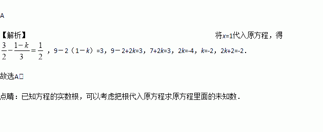 已知x=1是关于x的方程的解,则2k+2的值是( )