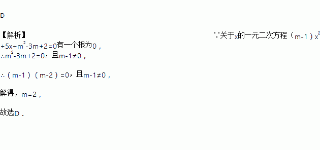 若关于x的一元二次方程(m﹣1)x2+5x+m2﹣3m+2=0有一个根为0,则m的值( )