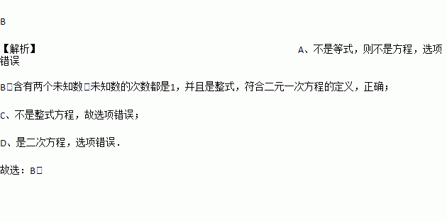 下列各式是二元一次方程的是( )