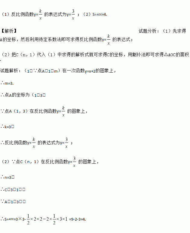 (2)点C(n,1)在反比例函数y=