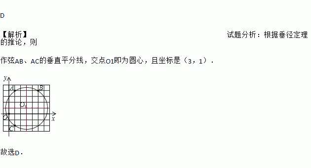 如图,在平面直角坐标系中,点A、B、C的坐标分别为(1,4)、(5,4)、(1,﹣2),则△ABC外接圆的圆心坐标是( )