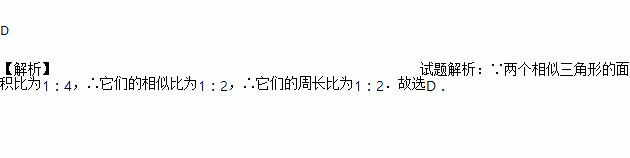两个相似三角形的面积比为1∶4,那么它们的周长比为( )