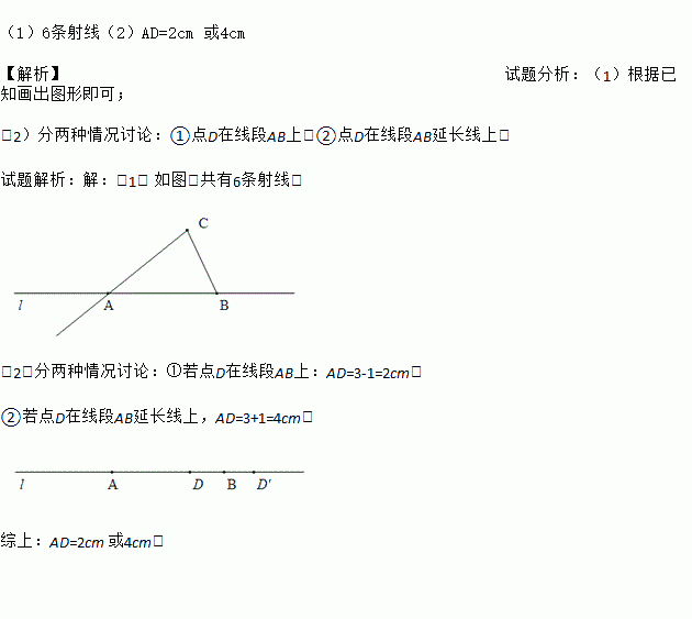 (2)若点D在直线AB上,且BD=1cm,求AD的长.