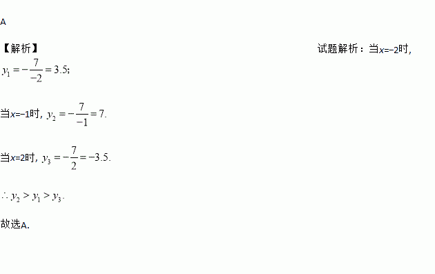 已知反比例函数图象上三个点的坐标是A、B、C,能正确反映、、的大小关系的是( )