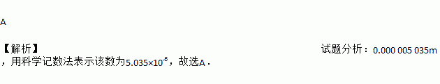 (2017四川省眉山市)某微生物的直径为0.000 005 035m,用科学记数法表示该数为( )