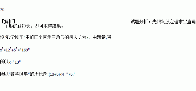 ,将四个直角三角形中边长为6的直角边分别向外延长一倍,得到图2所示的“数学风车”,则这个风车的外围周长是___________.
