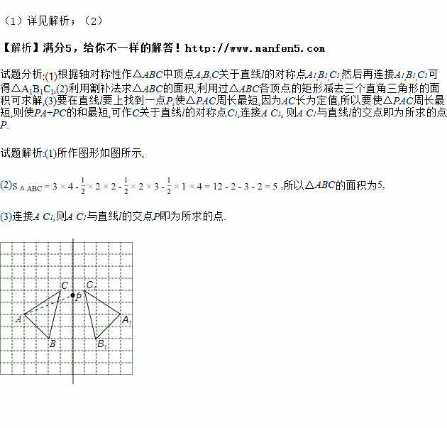 (1)在图中作出△ABC关于直线l对称的△A1B1C1 (要求A与A1,B与B1,C与C1相对应);