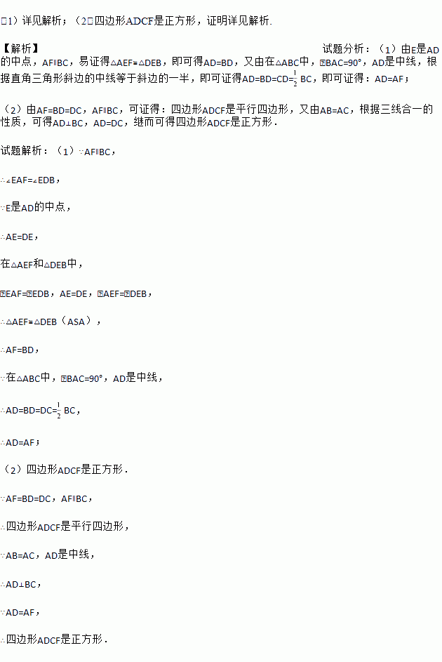 如图,在△ABC中,∠BAC=90°,AD是中线,E是AD的中点,过点A作AF∥BC交BE的延长线于F,连接CF.
