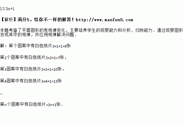 (2)第n个图案中有白色纸片______张