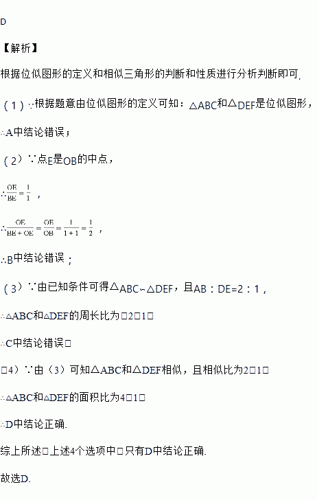 C. △ABC与△DEF的周长比为1:2 D. △ABC与△DEF的面积比为4:1