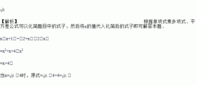 先化简,再求值:x(x+1)+(2+x)(2﹣x),其中x=﹣4.