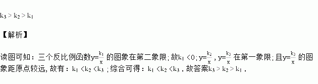 如图所示是三个反比例函数,,的图象,由此观察,,的大小关系是________.