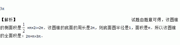 一个圆锥的侧面展开图是半径为2的半圆,则该圆锥的全面积是______.