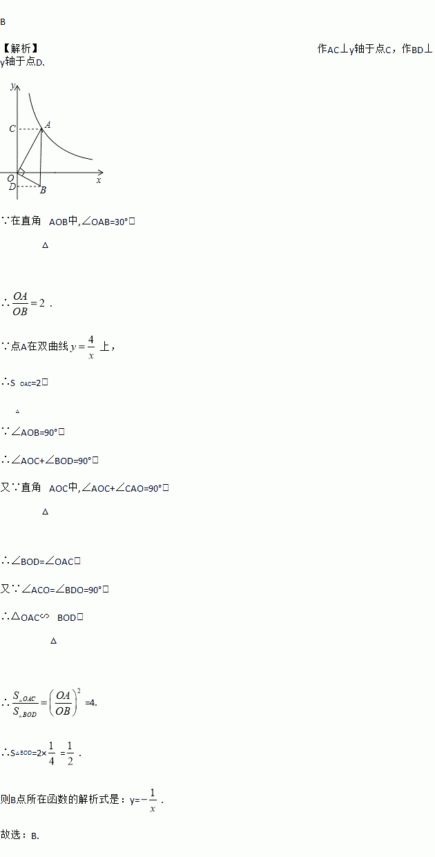 点A在函数的图象上运动,作△AOB,使∠AOB=90°,点B在第二象限,OA=2OB,则点B也会在一个函数的图象上运动,这个函数是( )