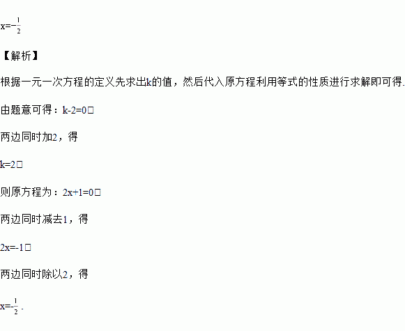 等式(k-2)x2+kx+1=0是关于x的一元一次方程(即x未知),求这个方程的解.