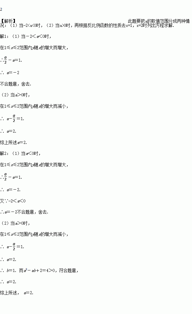 已知a>-2,若当1≤x≤2时,函数y= (a≠0)的最大值与最小值之差是1,求a的值.