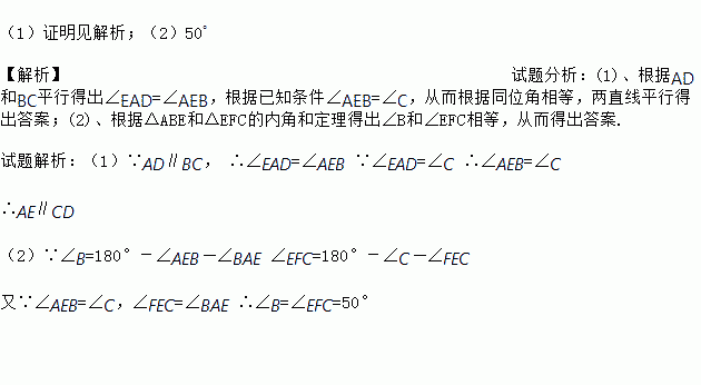 如图,AD∥BC,∠EAD=∠C,∠FEC=∠BAE,∠EFC=50°.