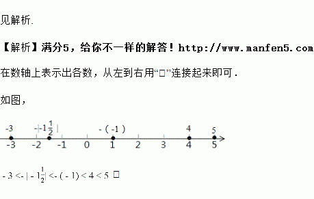 把,,,,分别表示在数轴上,并用“”号把它们连接起来.
