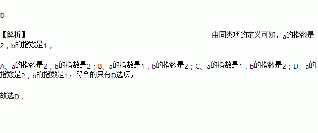 下列单项式中,与是同类项的是( )