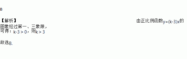 正比例函数y=(k-3)x的图象经过一、三象限,那么k的取值范围是( )