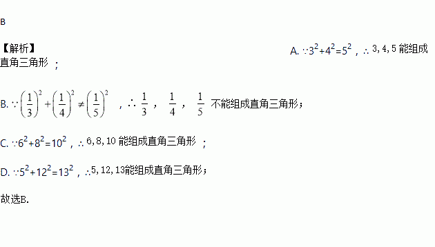 以下列各组数据为边不能组成直角三角形的一组数据是( )