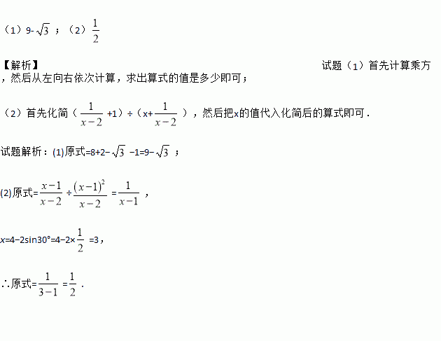 (2)先化简,再求值:已知:(+1)÷(x+),其中x=4﹣2sin30°.