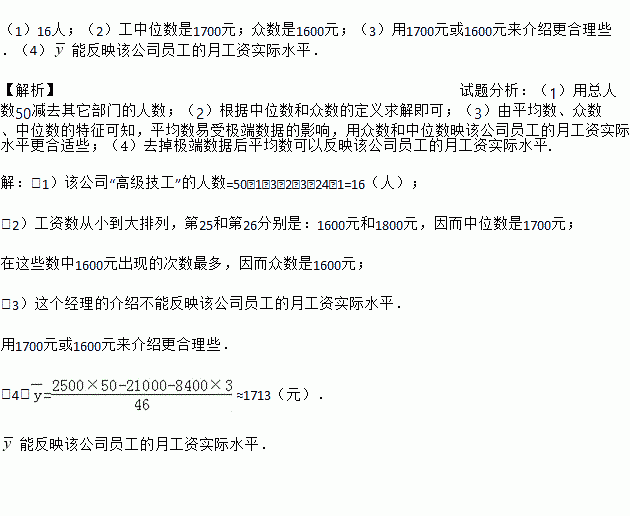 某高科技产品开发公司现有员工50名,所有员工的月工资情况如下表: