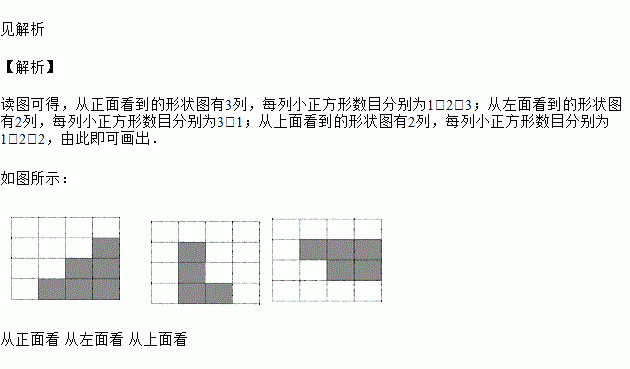 从正面、左面、上面观察如图所示的几何体,分别画出你所看到的几何体的形状图.(请用阴影表示出 来)