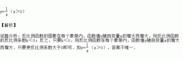 已知y是x的反比例函数,当x>0时,y随x的增大而减小.请写出一个满足以上条件的函数表达式 .