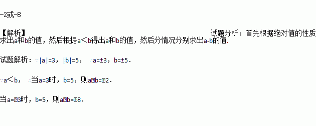 已知|a|=3,|b|=5,且a<b,求a﹣b的值.