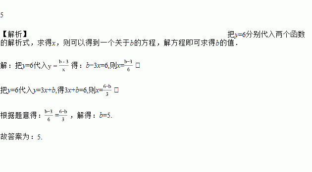 若反比例函数和一次函数的图象有两个交点,且有一个交点的纵坐标为6,则b=______。