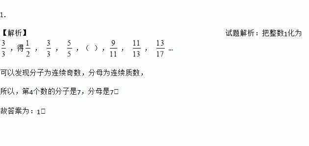 按一定规律排列的一列数: ,1,1,□, , , ,…请你仔细观察,按照此规律方框内的数字应为_____.