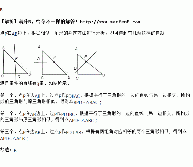在边AB上有一点(点不与点、点重合),过点作直线截,使截得的三角形与相似,满足条件的直线共有( )