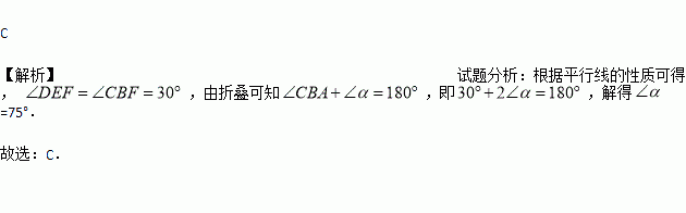 有一条直的宽纸带,按如图所示的方式折叠,则∠α的度数等于( )
