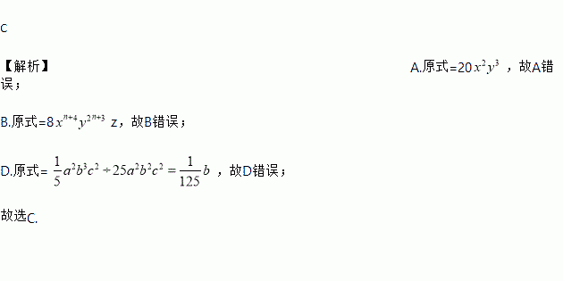 A. 5y2·4x2y=9x2y3 B. (-2x3ynz)·(-4xn+1yn+3)=8xn+1y2n+3