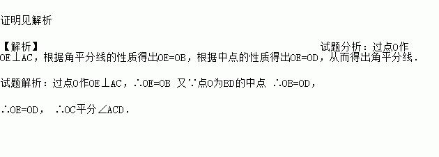 如图,在四边形ABDC中,∠D=∠ABD=90°,点O为BD的中点,且AO平分∠BAC.求证:OC平分∠ACD.