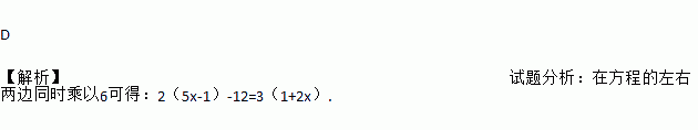 C. 3(x+l)-(2x-3)=12 D. 3(x+1)-(2x-3)=6