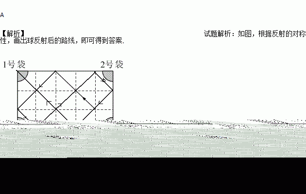 如图是一个经过改造的规则为3×5的台球桌面示意图,图中四个角上的阴影部分分别表示四个入球孔,如果一个球按图中所示的方向被击出(球可以经过台球边缘多次反弹),那么球最后将落入的球袋是( )