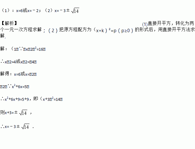 (1)(x﹣2)2=16