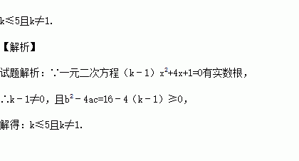 若关于x的一元二次方程(k-1)x2+4x+1=0有实数根,则k的取值范围是
