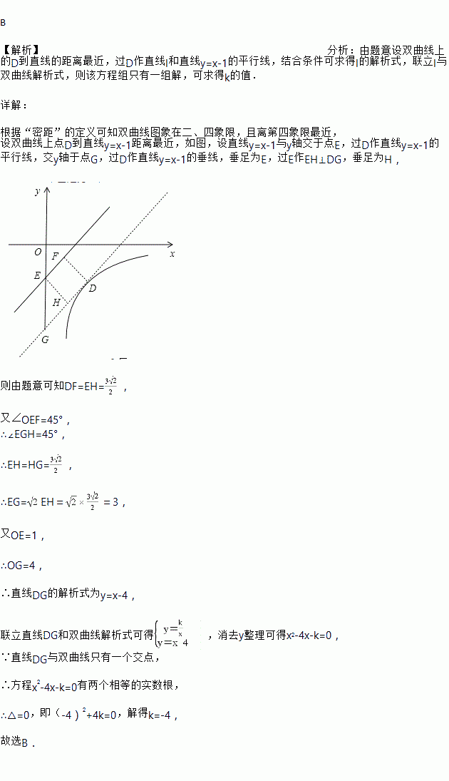 ,点B与射线OC之间的“密距”为3,如果直线y=x-1和双曲线