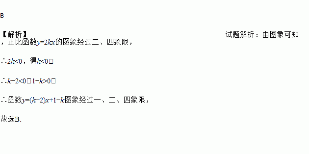 正比例函数y=2kx的图象如图所示,则y=(k-2)x+1-k的图象大致是( )