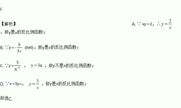 A. xy = 2 B. y = - (k≠0) C. y = D. x = 5y-1
