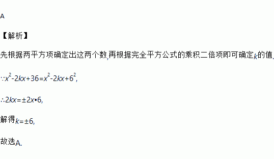 已知x2﹣2kx+36是一个完全平方式,则k的值是( )
