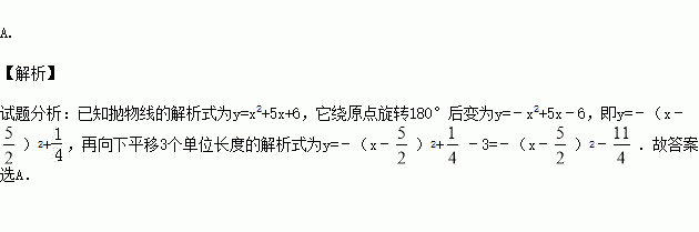 在平面直角坐标系中,把一条抛物线先向上平移3个单位长度,然后绕原点选择180°得到抛物线y=x2+5x+6,则原抛物线的解析式是( )