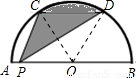 如图,半圆的直径AB=10,P为AB上一点,点C,D为半圆的三等分点,则阴影部分的面积等于 .