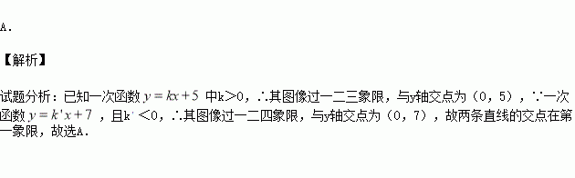 ,假设k>0且k'<0,则这两个一次函数的交点在( )