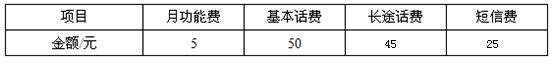 | 项目 | 月功能费 | 基本话费 | 长途话费 | 短信费 |