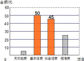 (2)基本通话费=50元,长途话费=45元;